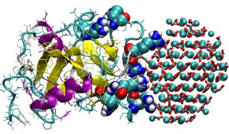 Учёные восполнили пробел, заложив в суперкомпьютер модели молекул, участвующих в формировании скорлупы. Оказалось, что две группы остатков аминокислоты аргинина, присутствующие на двух петлях OC-17, работают как скрепка или хомут, захватывающий наноразмерные частицы карбоната кальция. Этот захват провоцирует карбонат на превращение в нанокристалл, который начинает расти. Но самое интересное происходит дальше.